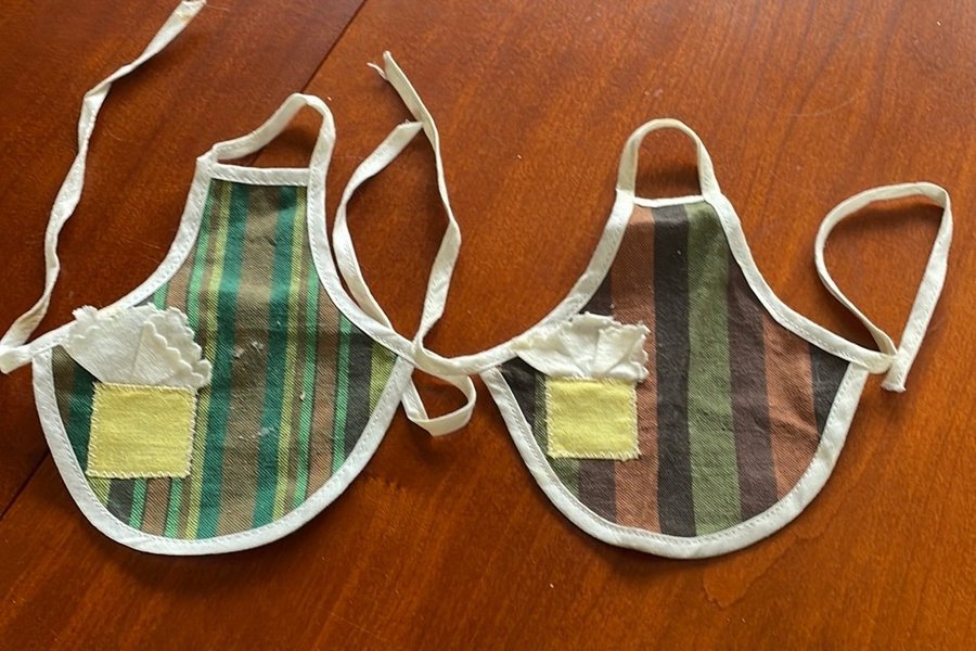 Retro: förkläden till ölflaskor 2 st. Från 60-talet eller tidigare. Lite smutsiga.