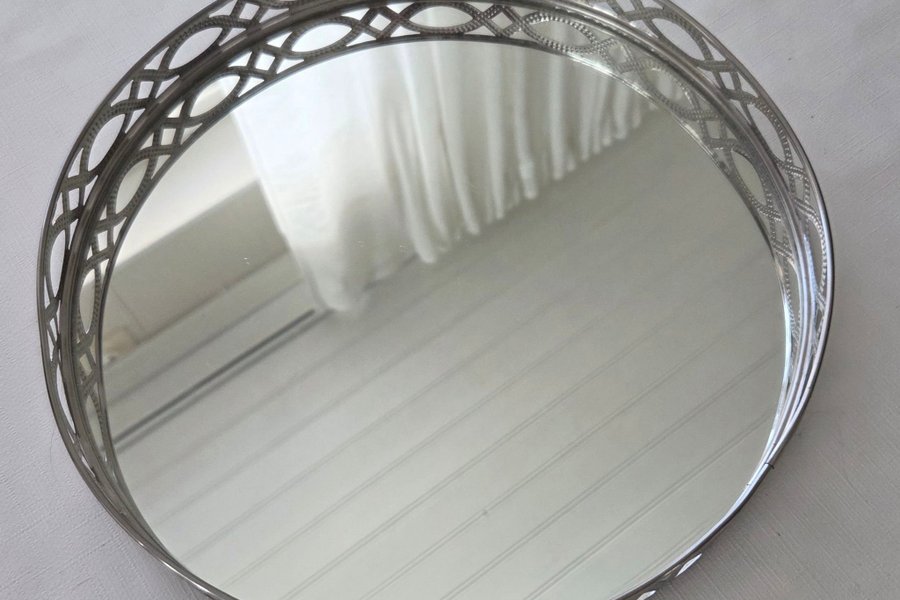 Spegelbricka med en dekorativ kant.