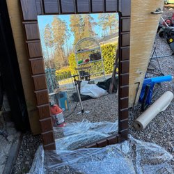 Säljer en spegel med svart ram. Passar bra i hallen eller sovrummet.
