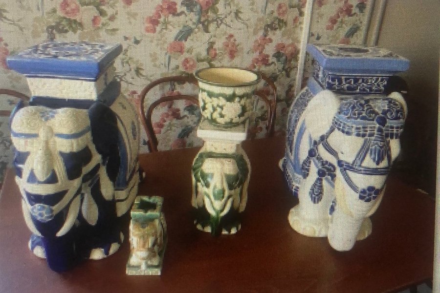 Keramikelefanter en hel familj har varit populära 1970 talet , måttet pappa och mamma 40cm och barn 20cm och 10 cm