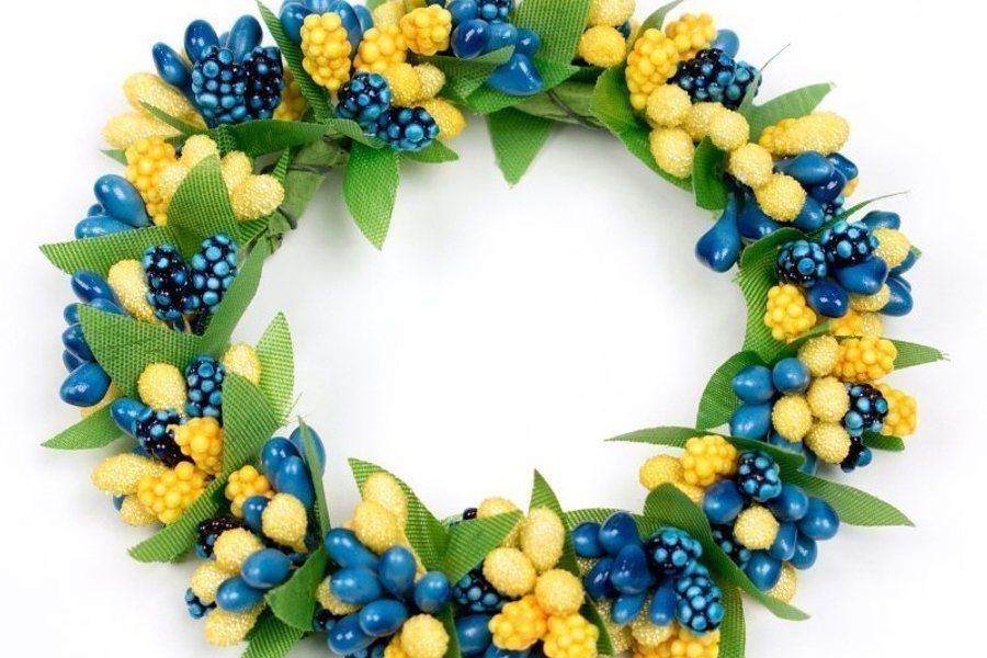 Ljusmanschett för blockljus, bär, blå och gul