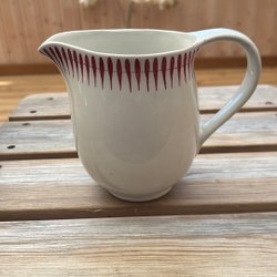 Dessa röda runda burkar är dekorerade med ansikts- och blommotiv. De har en diameter på 8 cm och en höjd på 7 cm.