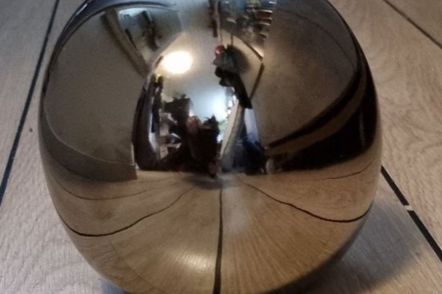 Stor cromad design kula. En elegant inredningsdetalj I hemmet.