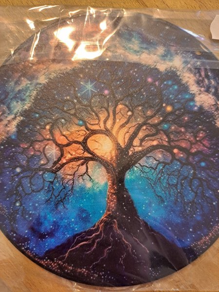 En vacker prydnad med motiv av livets träd. Färgstark design som passar bra som dekoration i hemmet. Kedja för upphängning medföljer. Passar som fönsterdekoration.