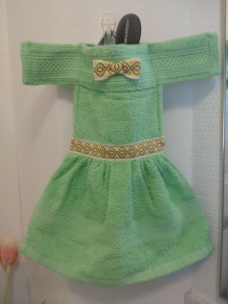 Sytt av frottehanddukar i form av klänning.