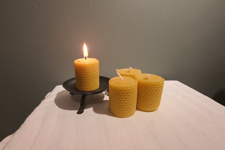 3 st handrullade bivaxljus av 100% svenskt bivax och bomullsveke,med underbar doft.
