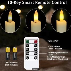 Fyra LED-ljus med naturtrogen låga. Batteridrivna. Drivs med aaa batterier själv kör jag med laddningsbara. Äkta stearin så de ska ej stå i solljus. Ett av ljusen råka ut för just det o fick en spricka men syns inte när den står i staken. Startas vis att trycka ned ljuset lite. Skickar med schenker el postnord för bådas säkerhet skull. Katt I hemmet så ev nått katthår kan medfölja mvh Elin