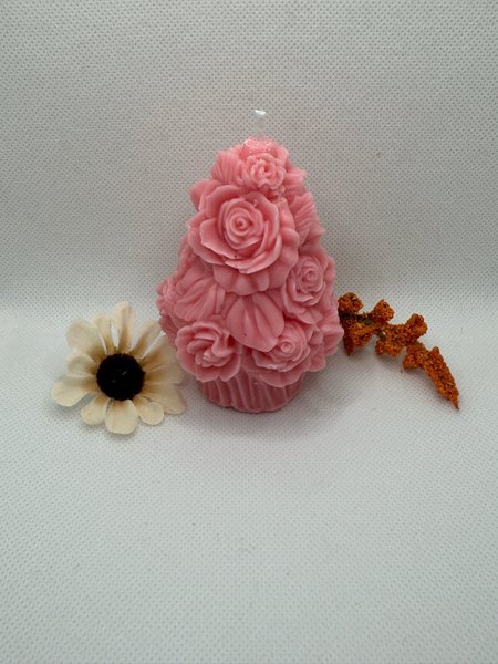 Ett dekorativt rosa ljus format som en blomma. Perfekt som en söt detalj i hemmet.