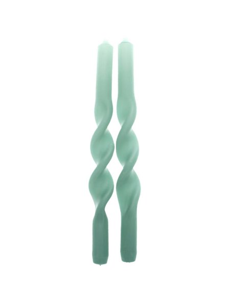 Ett set med 2 eleganta vridna kronljus i en grön färg som ger en stilfull och levande form. De passar perfekta som dekorativa detaljer i ljusstakar. Höjd 21,5 cm.