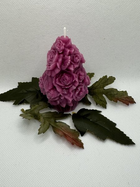 Ett dekorativt ljus format som en bukett rosor. Perfekt som en vacker detalj i hemmet.