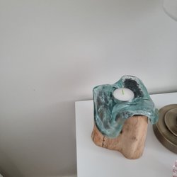Ljuslykta i glas och trä