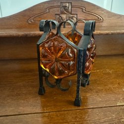 Ljuslykta med orange glas med guldfärgad fot