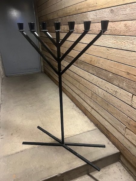 Svart smidesljusstake för sju ljus. Stabil konstruktion med fot.