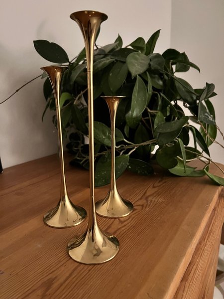 Dessa är ljusstakar i mässing, formgivna av Poul Östling för Gnosjö.