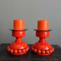 Ett par ljusstakar i trä med snidade detaljer. Dekorativa och passar för blockljus.