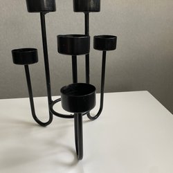 Säljer en stilren svart ljusstake. Perfekt för att skapa en mysig atmosfär i hemmet.