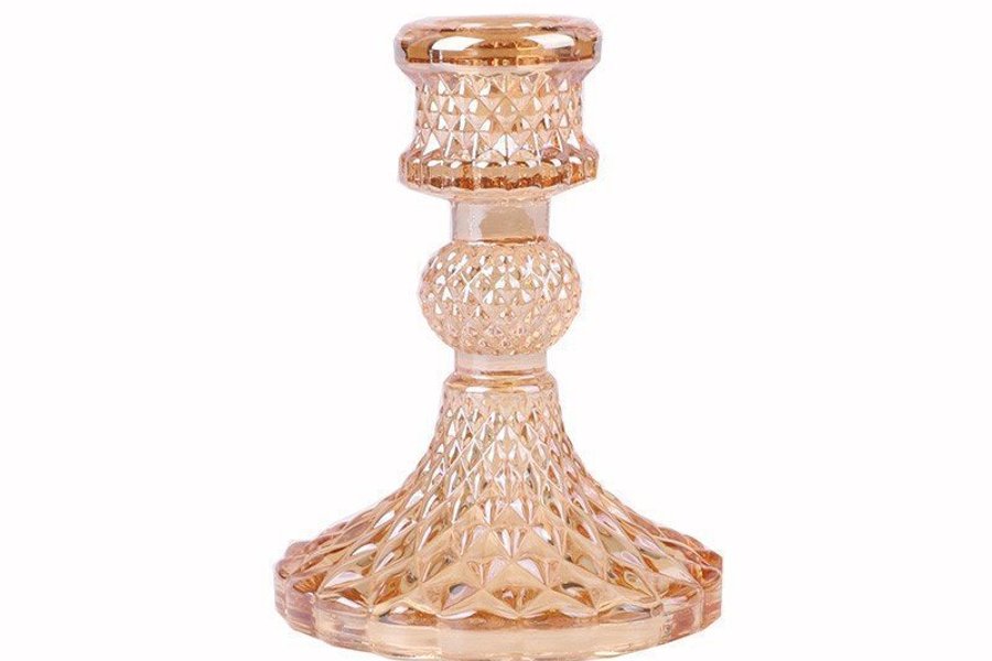 Ljusstake i glas med dekorativ design.