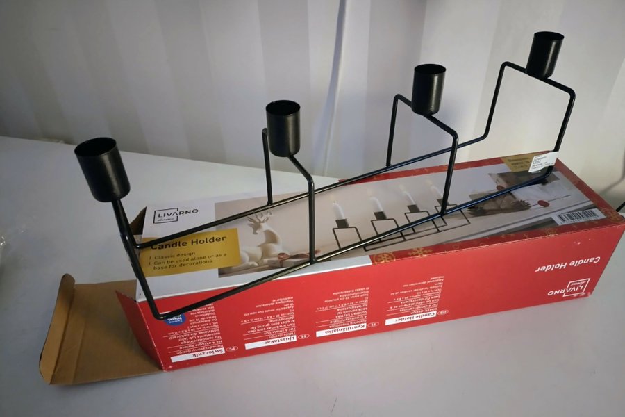 Livarno ljusstake för 4 ljus, tidlös design. Mått: längd 38 cm, bredd 9 cm och höjd 11 cm.
