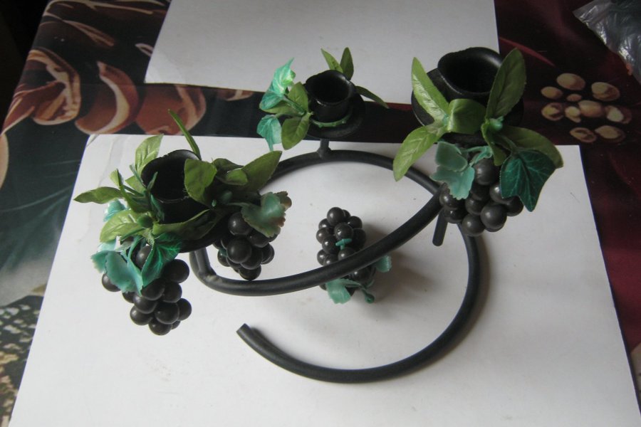 en ljus stake i metall som är hel o fin. men ljus manschetterna. behövs bytas ut saknas delar på dom av ålder. men får följa med på köpet