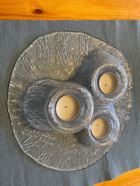 Ljusstake i glas.