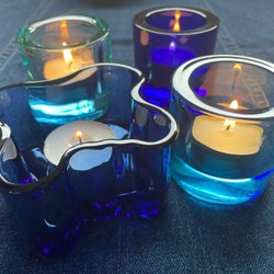 Två ljuslyktor från Iittala, Kivi modell. Färgen är havsblå.