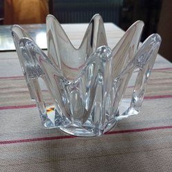 Retro fin ljuslykta/mysbelysning fot i teak grå-lila glaskupa