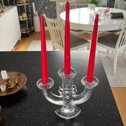 Vacker tung ljuslykta i glas, Kosta Sweden