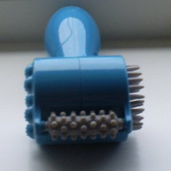 En massageapparat för användning på kroppen. Den har en av/på knapp och tre massagepunkter. Stl 9x7x10 cm