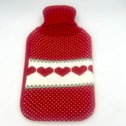 Ett rött hjärta i plast att fylla med varmvatten för värmehållning. 23x20cm Rymmer ca 1 l.