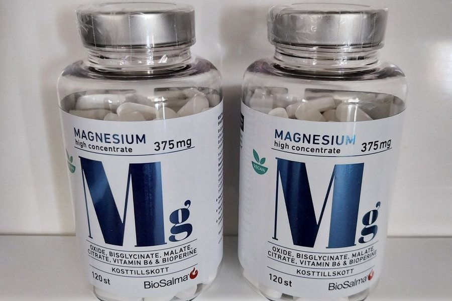 BioSalma Magnesium 375 mg är ett kosttillskott som innehåller fyra olika former av magnesium tillsammans med vitamin B6 och svartpepparextrakt för bättre upptag.