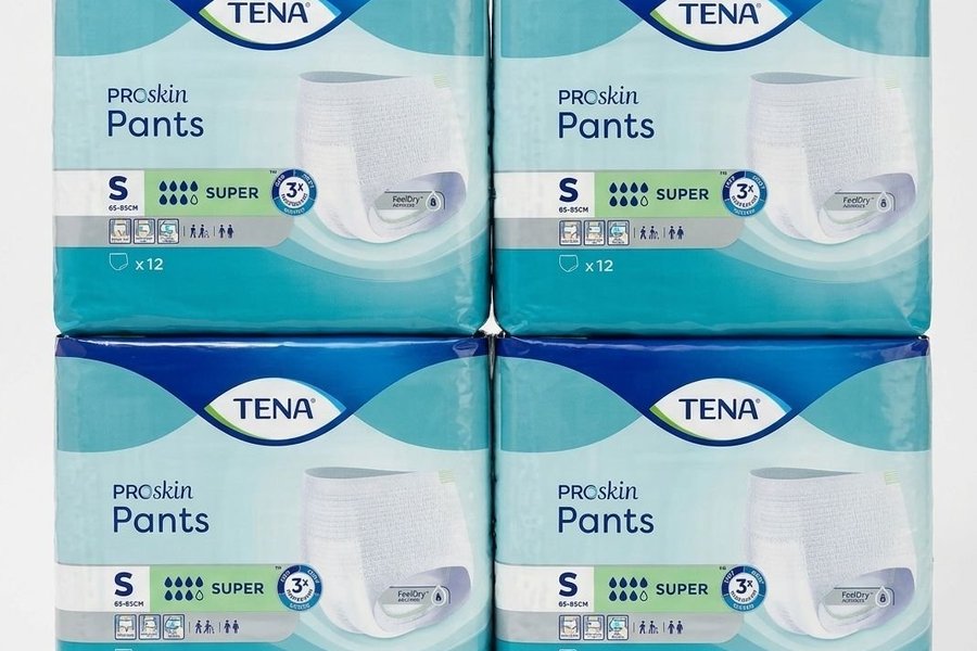 4 st Oöppnat paket med 12 st inkontinensbyxor.