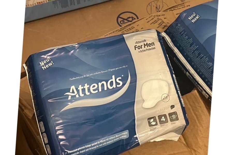 Attends For Men, anatomiskt formade inlägg speciellt för män med måttlig blåsfunktion.