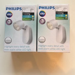 En praktisk spotlight som kan användas för att belysa olika delar av ett rum. Den har en vit skärm och en kromad bas. Lätt att installera och använda.
