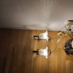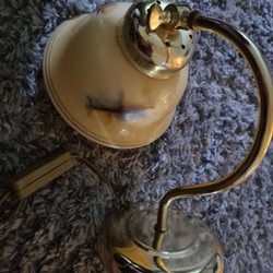 Markslöjd vägglampa med en stilren design. Lampan har en mässingsfärgad armatur och en vacker, droppformad glasskärm. Oanvänd och utan sladd. Höjd ca. 20 cm.