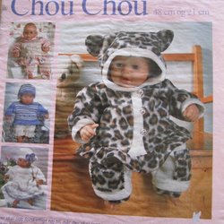 Stickbeskrivning för att skapa en söt och fluffig outfit till din docka. Inkluderar mönster för jacka, byxor, mössa och stövlar med pälskant.