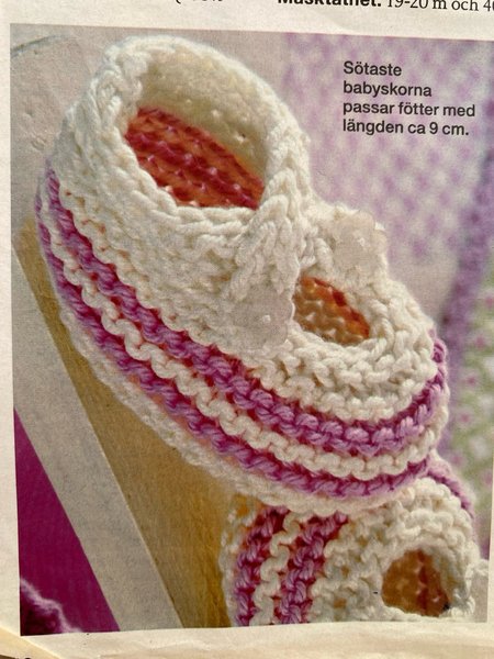 Mönster för att sticka babyskor. Tidningsurklipp. Storlek fotlängd ca 9 cm . Betalning sker inom5 dagar efter avslutad auktion. Köparen står för frakt .