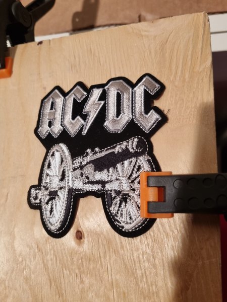 AC/DC tygmärke med en kanon. Perfekt för att ha på jackan eller väskan.