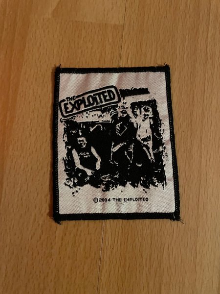 En tygmärke med tryck av bandet The Exploited. Patchen är vit med svart tryck som föreställer bandmedlemmar och bandets logotyp. Nedre högra hörnet av trycket har texten "© 2004 THE EXPLOITED"