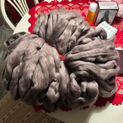 Två oanvända garnnystan av XL garn, 15 meter per nystan i en gråaktig nyans. Lämpar sig bra till arm-/handvirkning.