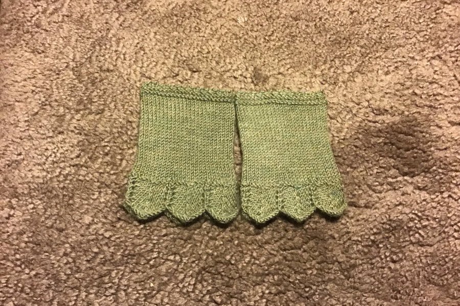 Mönsterstickade handledsvärmare i baby merino ull olivgrön.