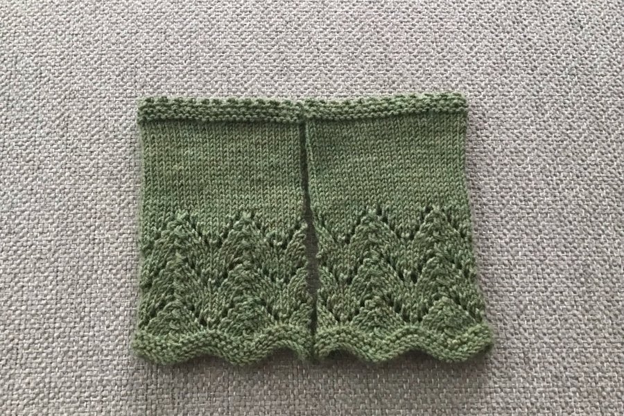 Mönsterstickade handledsvärmare i baby merino ull grön melerad.