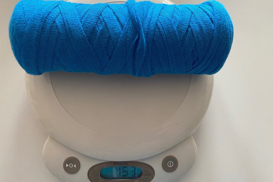 Ett nystan blått Ribbongarn (bomull) från Hobbii färg ?