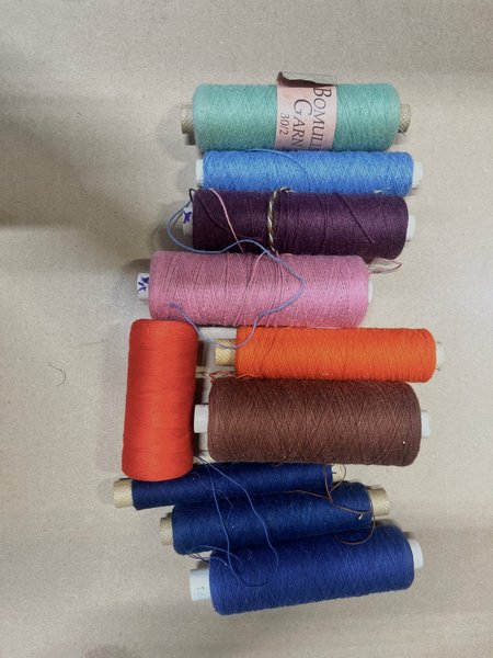 Ett paket med olika bomullsgarner säljs billigt. 30/2, 16/2, 22/2 cottolin.