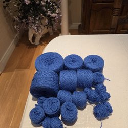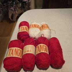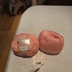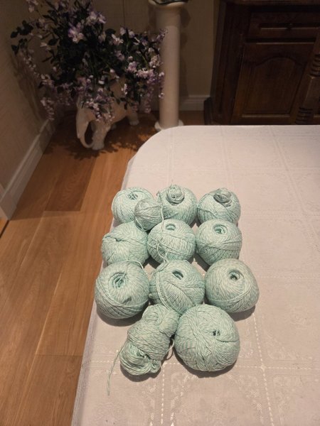 100% bomull, tippar på stickor 3½-4, finns ingen mer information om garnet, färg grönvit.