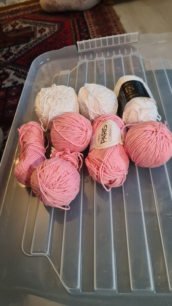 Paris bomullsgarn de upprullade är motsvarande ett helt nystan samma parti rosa, samma parti vitt