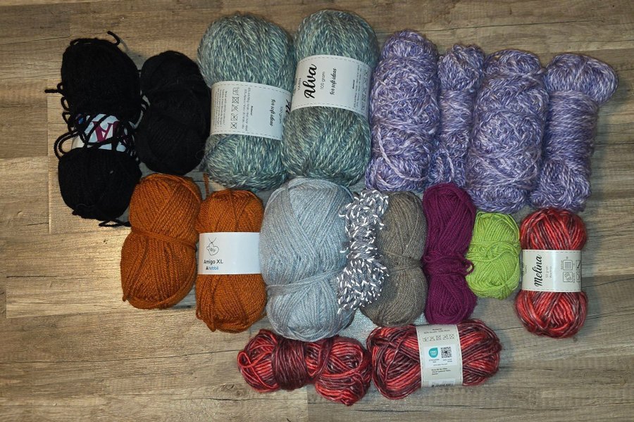 Rensar ut i skåpet. Katt finns i hemmet. Ca 1kg garn