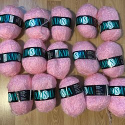 Mjukt rosa garn 5 st Angorina lyx, 1 st akrylgarn i blanda nyans + en liten ljusrosa rest.