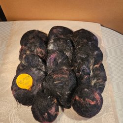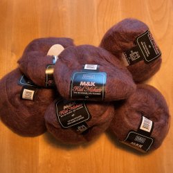 Mohairgarn enligt bilder. Olika röda färger, nära varann. Finns bara en banderoll, men allt verkar vara samma kvalitet. 550 gram sammanlagt.