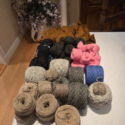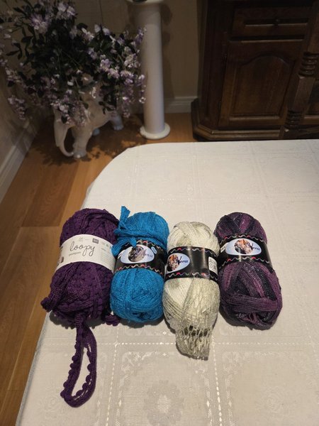 Sjalgarn/spetsgarn, akryl/nylon, stickor 6, 100 gram = 25-28 meter, färgmix.