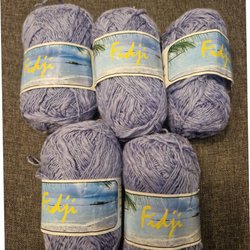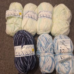 Två mörkmelerade à 50g/nystan, ett pastellmelerat 50 g, ett gul/orange melerat 50 g.